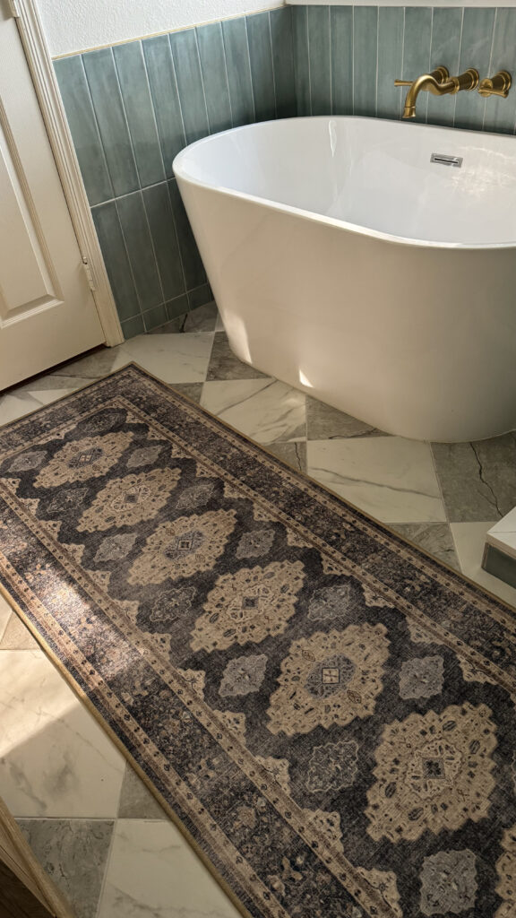 I could not be happier with how the overall pattern and colors fit in with the entire bathroom! This rug instantly became one of those pieces that felt like it’s always been there with how well it works.