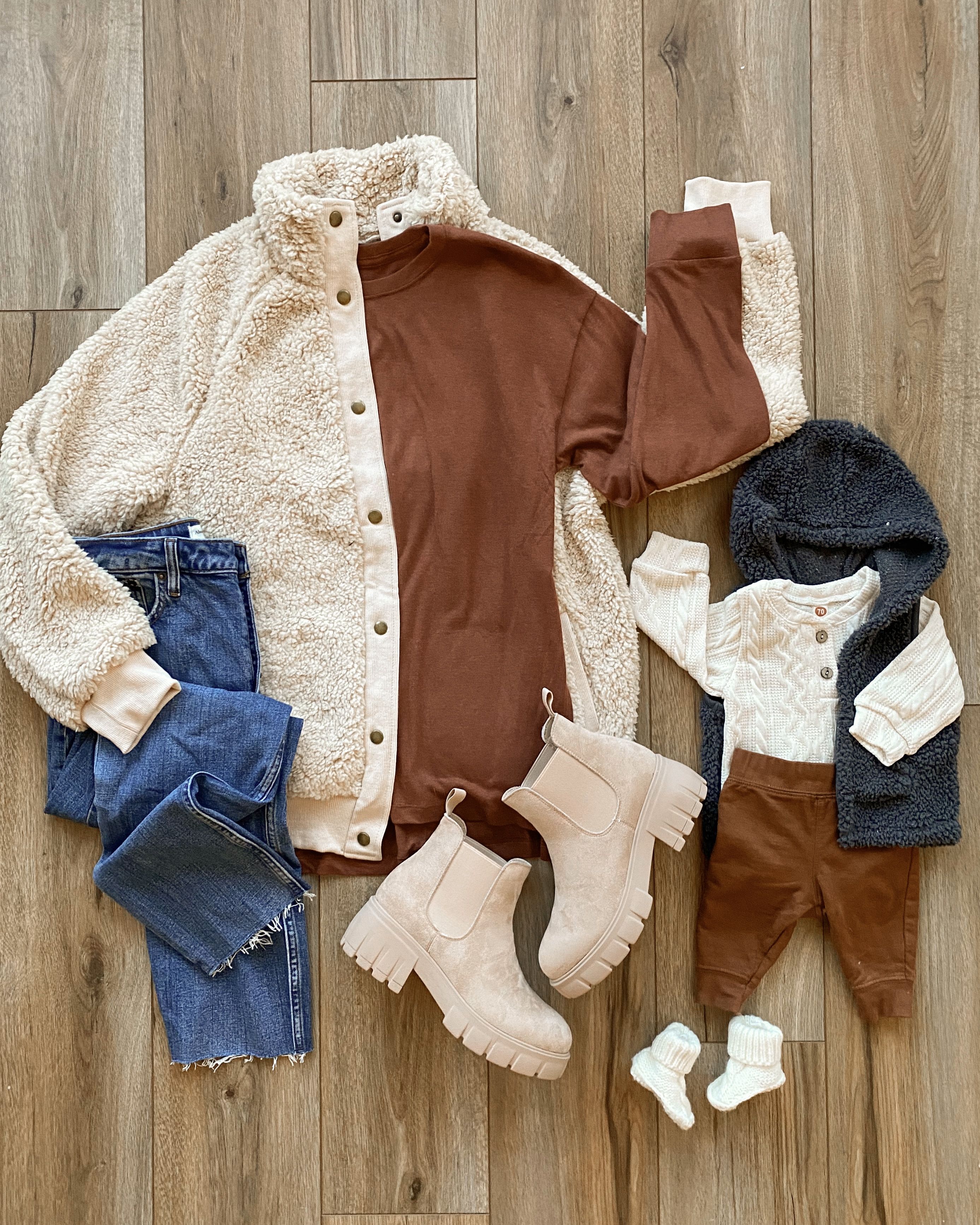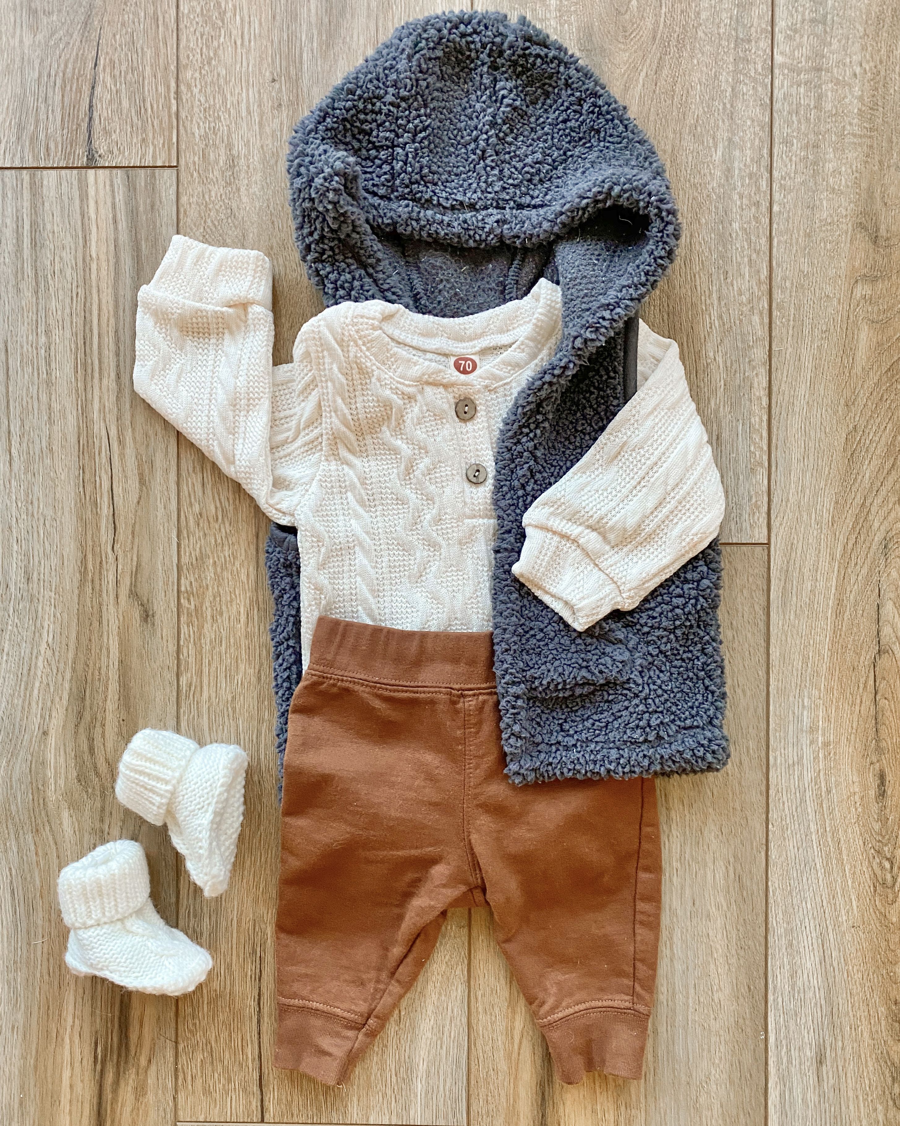 This baby sweater set was the little outfit my son wore in our family photos! It is the perfect little fall/winter outfit. The fabric is great quality and not too thick either. Also comes in tons of colors!
